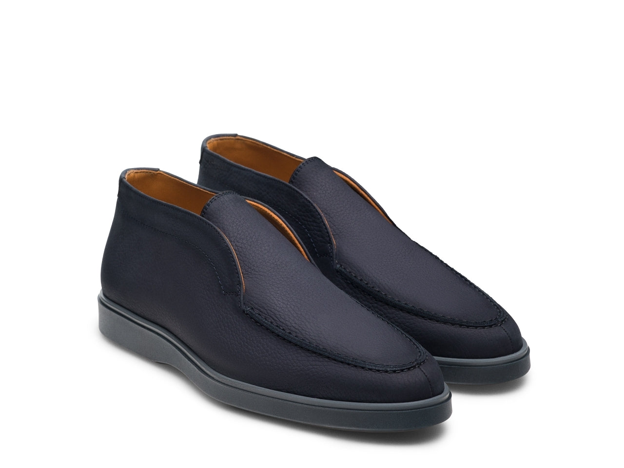 La Loda Navy Nubuck est une chaussure slip-on contemporaine en nubuck bleu marine texturé. Sa semelle noir mat offre un confort exceptionnel pour un usage quotidien. Légère, élégante et facile à porter, elle s’adapte parfaitement à un look casual chic.
